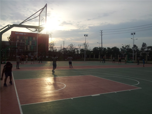 經(jīng)過一個多月的緊張施工,園區(qū)公舍新建設(shè)的兩座標準籃球場已于近日投入使用。