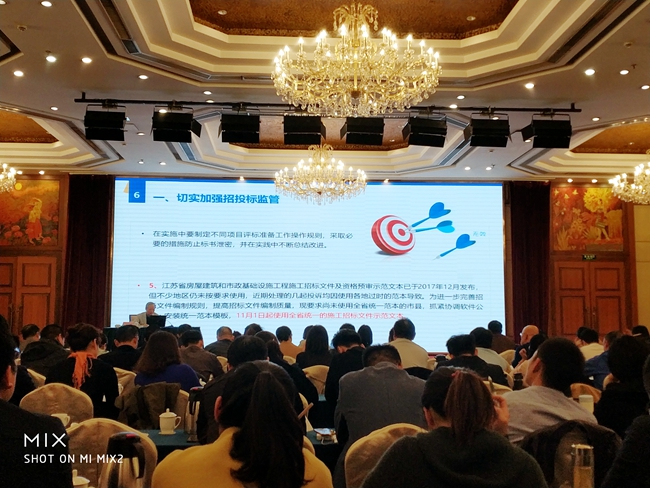 此次培訓會,省招標辦主任何平主講了“江蘇省房屋建筑和市政基礎設施項目工程總承包招標投標導則”,省住房城鄉(xiāng)建設廳陳慧玲主講了“江蘇省國有資金投資工程建設項目招標投標管理辦法”。