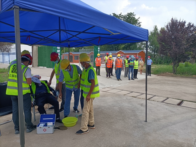 8月19日,開發(fā)公司結(jié)合夏季高溫天氣狀況在園區(qū)通湖大道電纜溝項目部組織高溫中暑應(yīng)急演練。
