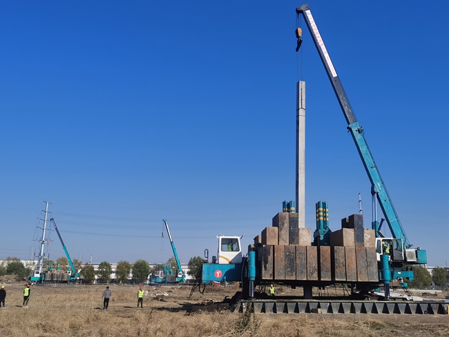 項目位于青海湖西路與五指山路交叉口,樁基采用預制混凝土方樁,施工區(qū)域涉及商業(yè)、白領公寓、藍領公寓、人防區(qū)及非人防區(qū),共計2235根,總長度約4.7萬米,為加快工程進展,現(xiàn)場布置四臺設備同步施工,確保2022年1月底完成施工。