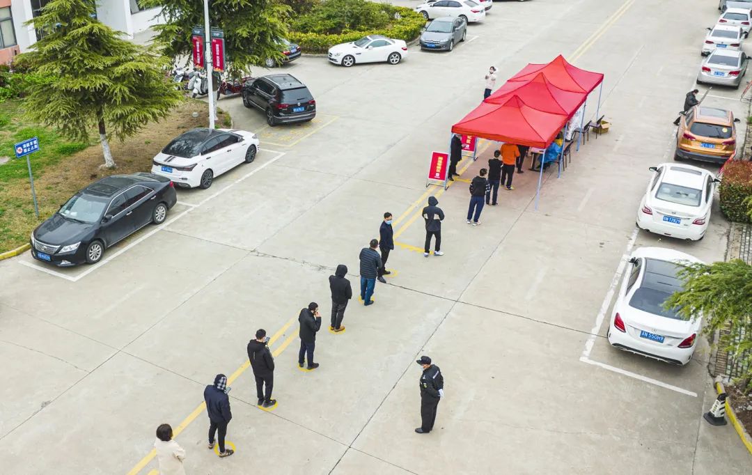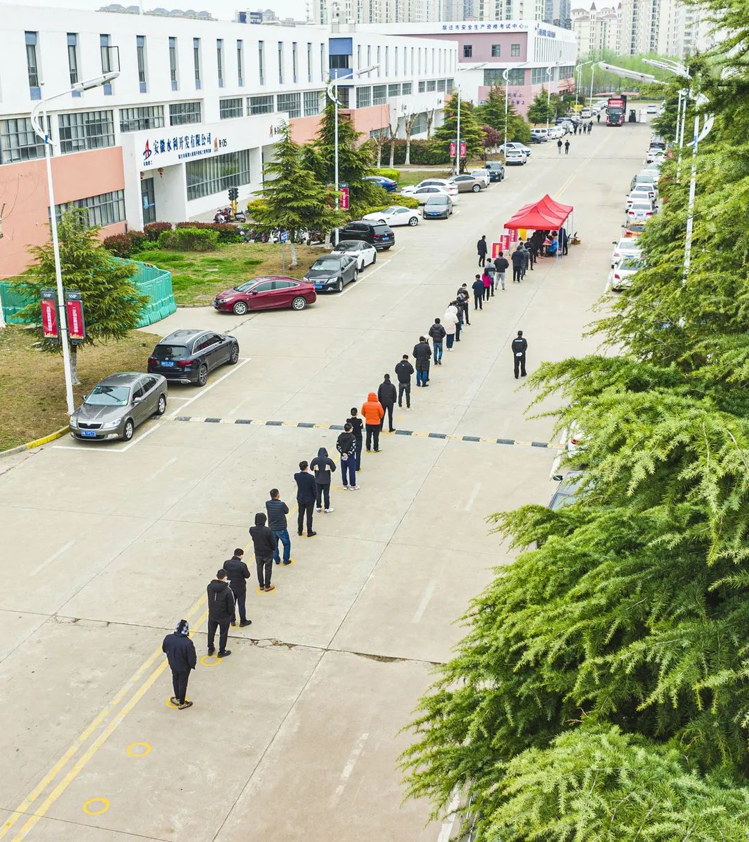 圖為3月21日,工業(yè)坊廠區(qū)各企業(yè)開展第二輪核酸抽檢工作,對保潔、保安、食堂工作人員做到每日一檢,工業(yè)坊各企業(yè)每天抽檢總?cè)藬?shù)的20%,做到一周內(nèi)全員應檢盡檢。