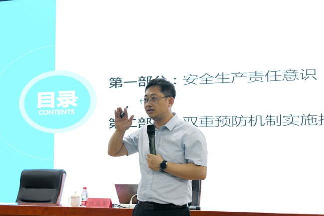 本次培訓(xùn)邀請(qǐng)國家注冊(cè)安全工程師祝成軍進(jìn)行授課。培訓(xùn)會(huì)上,祝成軍圍繞開展安全生產(chǎn)雙重預(yù)防體系建設(shè)工作的意義,相關(guān)法律法規(guī)、標(biāo)準(zhǔn)等內(nèi)容進(jìn)行了詳細(xì)講解,并結(jié)合具體事故案例,對(duì)如何理解雙重預(yù)防體系、如何劃分作業(yè)單元、如何進(jìn)行風(fēng)險(xiǎn)辨識(shí)與評(píng)價(jià)等內(nèi)容進(jìn)行了專門的講解。