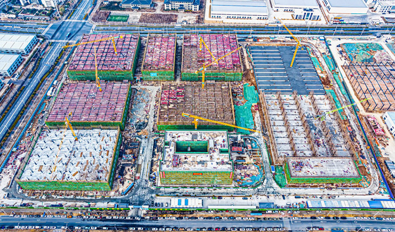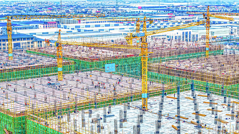 2023年12月26日,蘇宿工業(yè)園區(qū)智慧信息產業(yè)園項目施工現場,工作人員正在有序施工。
