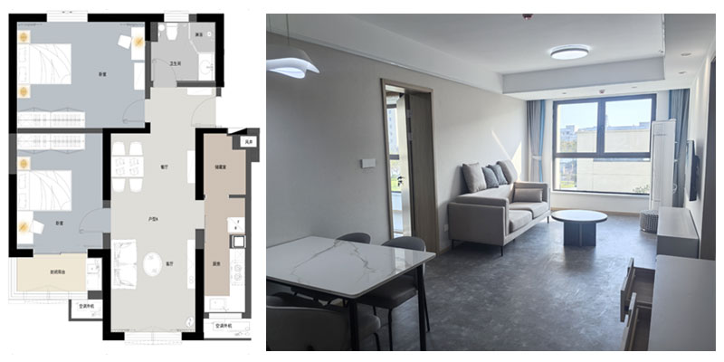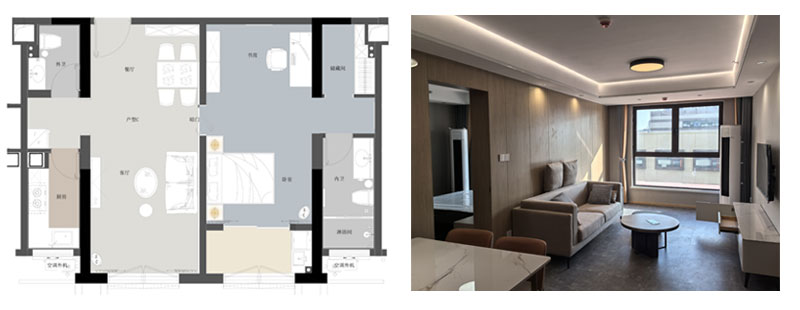青年公寓一期3#白領(lǐng)公寓共三種戶型,A戶(2室1廳1廚1衛(wèi)面積84m2)44間、B戶(1室1廳1廚1衛(wèi),面積35m2)88間、C戶(1室1廳1廚2衛(wèi),面積72m2)44間,共計(jì)154間,裝修面積約1.3萬(wàn)平方米。白領(lǐng)公寓旨在服務(wù)于入駐企業(yè)高精尖人才,是園區(qū)迄今為止已建成的單體建筑規(guī)模最大、配套設(shè)施最為完善的白領(lǐng)公寓,內(nèi)設(shè)廚灶、抽油煙機(jī)、櫥柜、床、書(shū)桌、衣柜、空調(diào)、冰箱及電視等基本生活設(shè)施,為入住人群提供拎包即住的便利。
