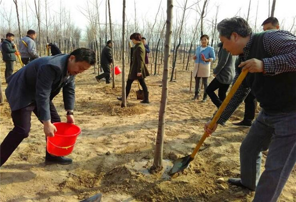 植樹過程中,參加植樹的人員個個熱情高漲、干勁十足,他們幾個人一組,扶直樹苗、揮鍬培土、踩實(shí)壓緊,不時還向身邊的園林綠化技術(shù)指導(dǎo)人員討教樹木種植、養(yǎng)護(hù)知識,整個勞動場面繁忙而有序。