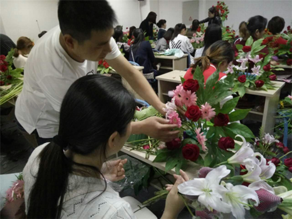 學員們在培訓中積極參與互動實踐,按照老師要求進行花材處理、構思設計,充分發(fā)揮自己的審美想象力,運用老師傳授的技巧,通過自己的奇思妙想完成了手捧花、圓形盆花、花籃等培訓作品。